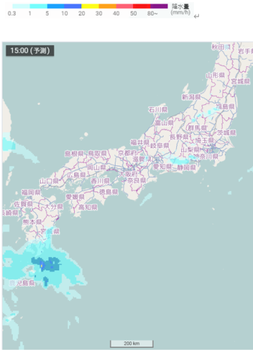 東日本と西日本付近の雨雲の予想(3月30日15時)
