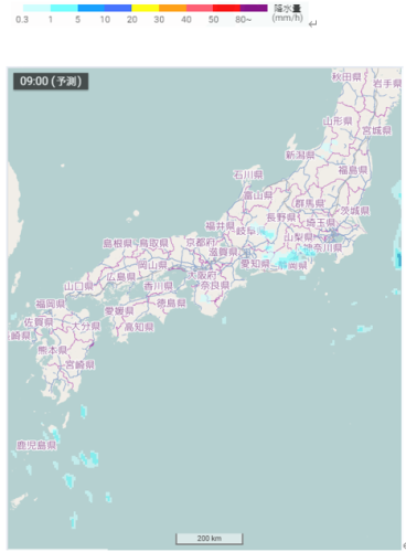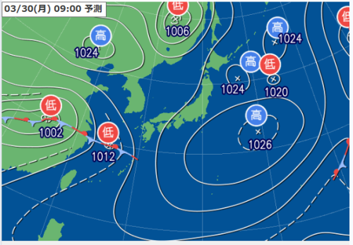 東日本と西日本付近の雨雲の予想(3月30日09時)