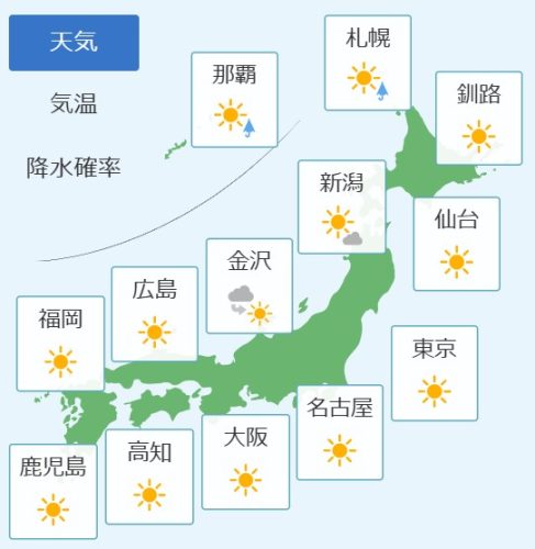 予想天気と気温(全国)