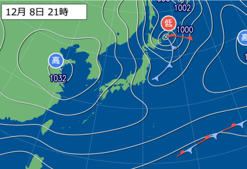 13日(土)以降は、朝鮮半島付近から低気圧が近付き、日本海西部に達するでしょう。これまで晴天が続いていた太平洋側でも、西日本から雨が降りだす見込みです。12月としてはまとまった雨になる可能性もあるでしょう。