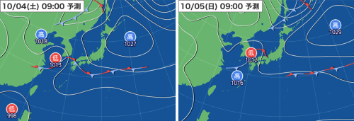 低気圧や前線が周期的に通過することで、天気は秋らしく数日の周期で変わります。日中はまだ汗ばむ陽気でも朝晩は肌寒く感じられる日が多くなるため、体調管理に十分お気を付けください。