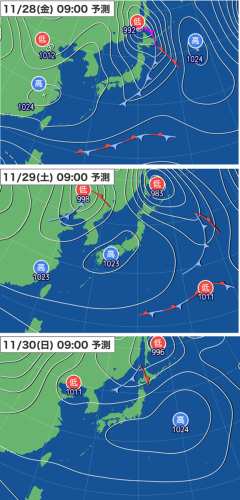28日(金)~30日(日)の予想天気図