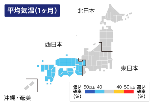 12月前半は、全国的に寒気の影響を受けやすくなる見通しです。周期的に冬型の気圧配置が現れ、師走らしい寒さとなるでしょう。特に西日本では、寒気を伴う高気圧に覆われる期間があり、気温は平年をやや下回る見込みです。北日本では期間前半にかなり気温が低くなる日がありますが、期間後半になると全国的に寒さは平年並みに落ち着く見通しです。