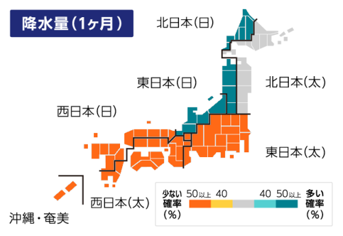 期間前半は、数日おきに発達した低気圧が北海道付近を通過するため、北日本では太平洋側も含めて雨や雪の降る日があるでしょう。低気圧通過後は冬型の気圧配置が強まり、日本海側では雪の降りやすく、降水量は平年を上回る見込みです。一方、西日本や東日本の太平洋側では、大陸から張り出す高気圧に覆われて晴れる日が多い見通しです。
