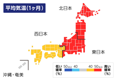 大陸の寒気が例年より弱く、北日本を中心に気温は平年より高めで推移する予想です。冬型気圧配置が一時的に強まることはありますが、季節の歩みを実感できる1ヶ月となりそうです。